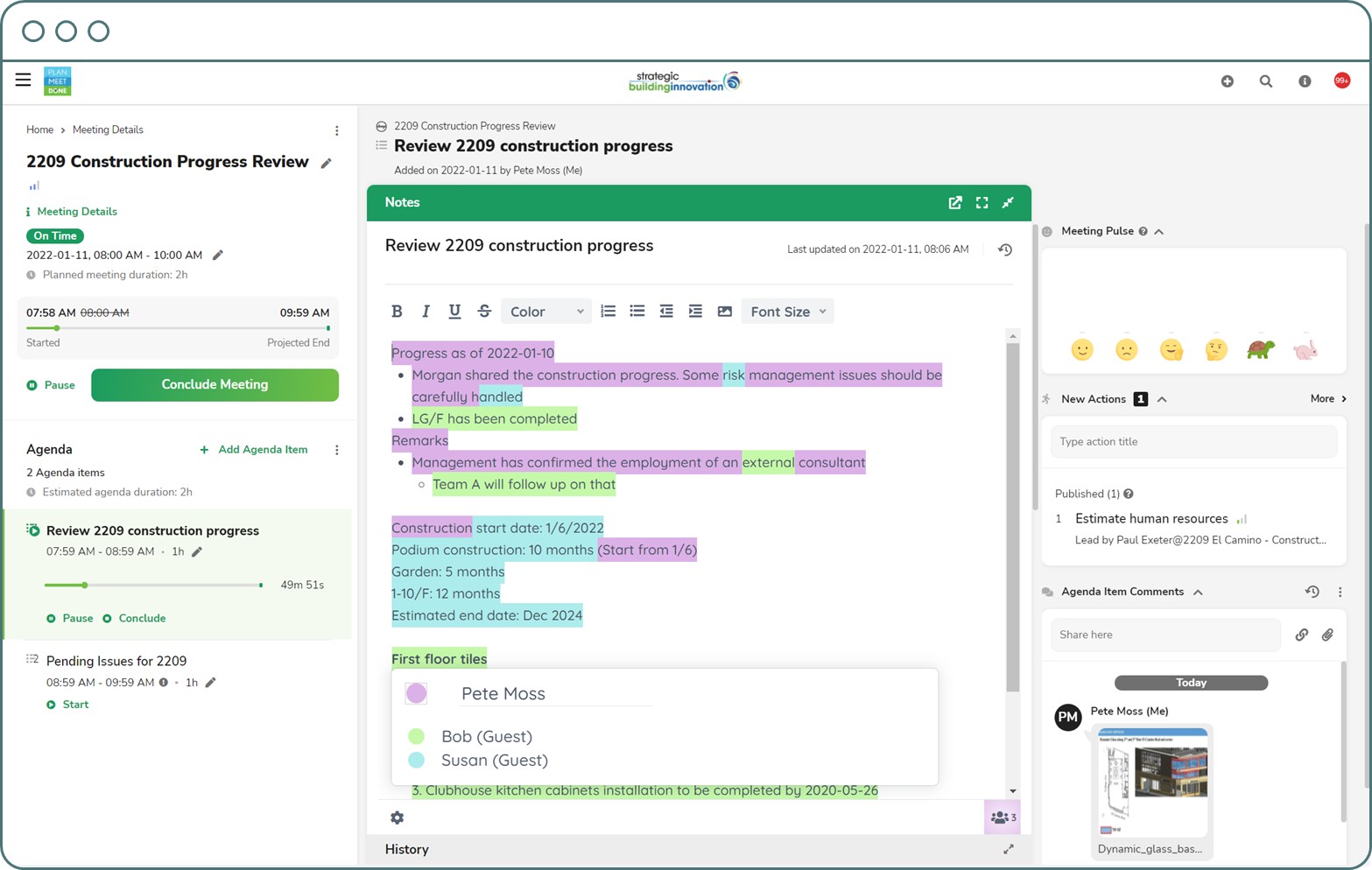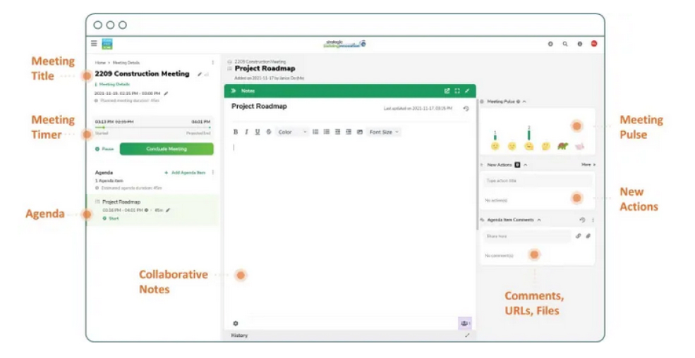 One such software platform is called PlanMeetDone.com (PMD). PMD is an Agenda Planning + Meeting Management + Action Tracking solution hosted online. It combines insights from 10 years of research, thousands of person-hours, with features specifically designed to enhance collaboration and enable efficient, sound decision making.