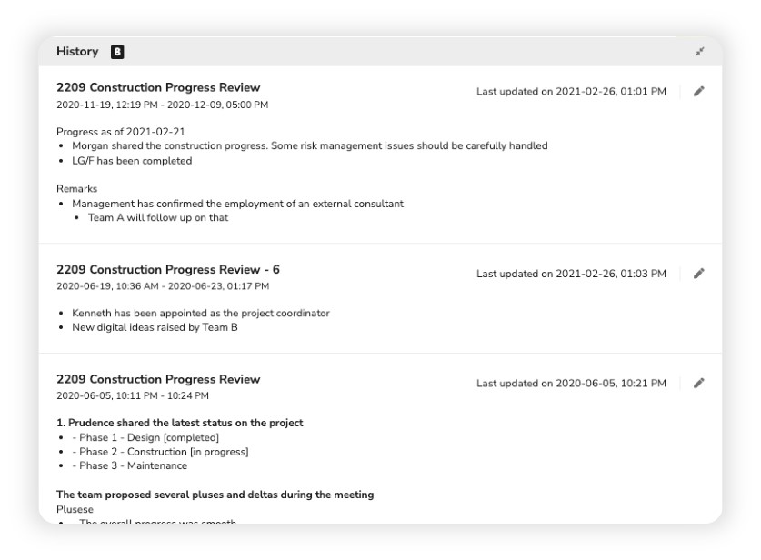 Be sure to capture great ideas, recap on decisions made, and establish next steps. PMD easily and quickly retrieves archived notes from previous meetings, enabling more effective review of relevant information and reducing decision making fatigue.